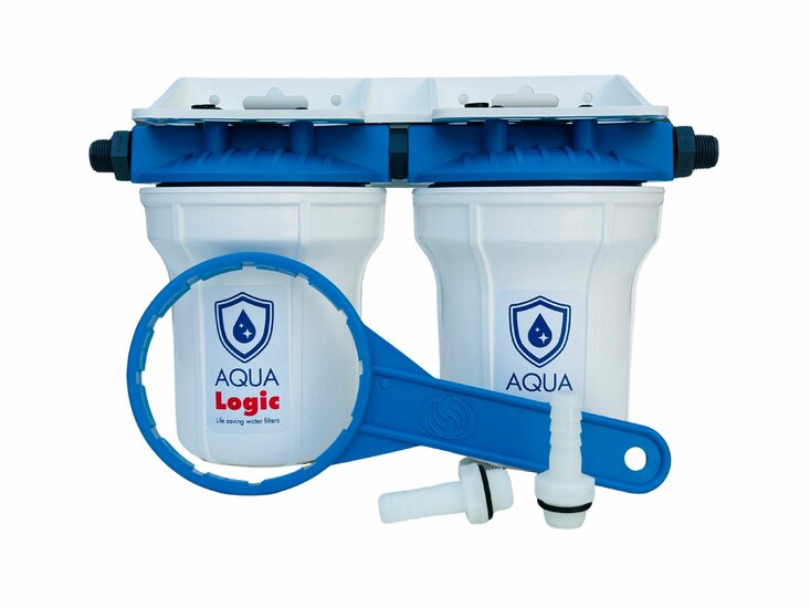 De AQUA Logic Inline Duo is een compacte tweestaps waterfilterset met losse carbon- en ultra-elementen. Geschikt voor gebruik onder de keukenkraan of in camper, caravan en boot.