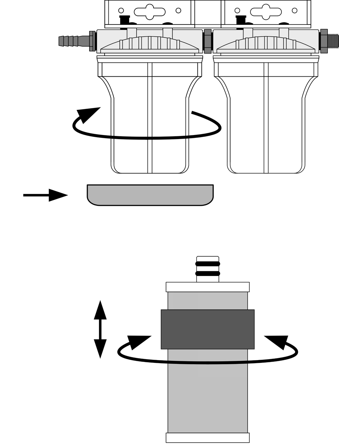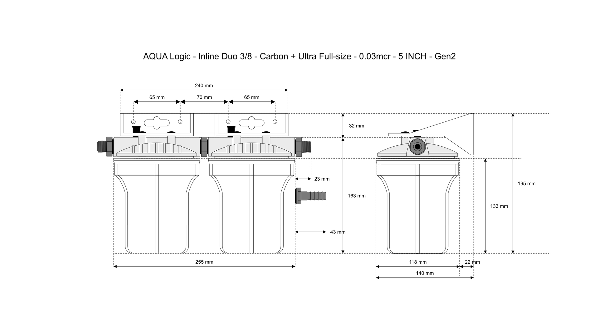 De Inline Duo bestaat uit twee gekoppelde 5” filterbehuizingen met daarin een carbonfilter en een ultramembraan. Doordat carbon en ultra als losse elementen zijn uitgevoerd, kunnen ze afzonderlijk vervangen worden.